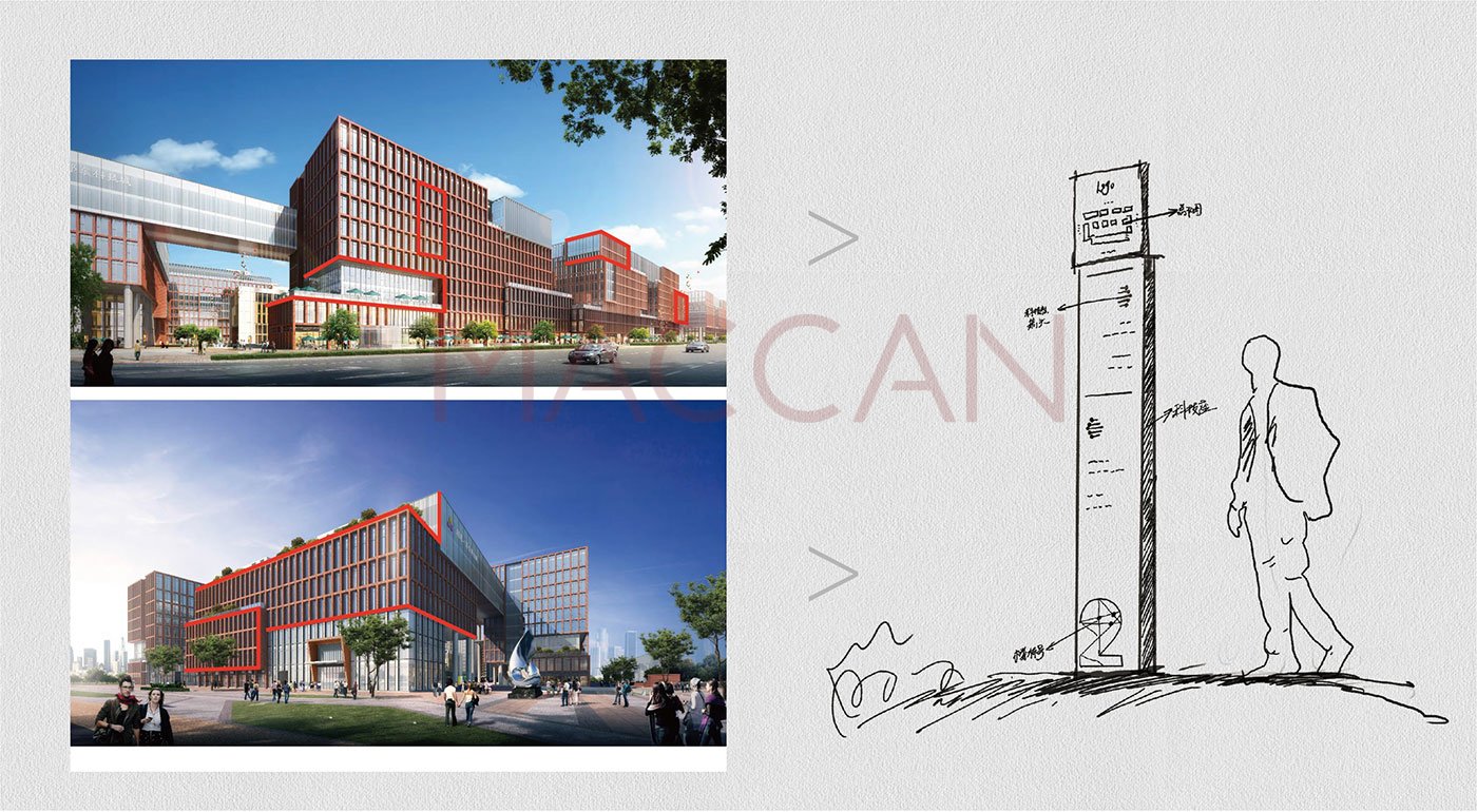 麥肯作為品牌環(huán)境空間設計領域的專業(yè)機構,擅長將一種單純的位置信息轉(zhuǎn)化成可以引起人們共鳴的品牌文化。設計團隊對園區(qū)路線進行了系統(tǒng)的統(tǒng)籌和分析,創(chuàng)作出一套整體的圖形標識語言,打造高新技術企業(yè)服務休閑辦公空間,突出科技、環(huán)保、創(chuàng)造可持續(xù)概念。